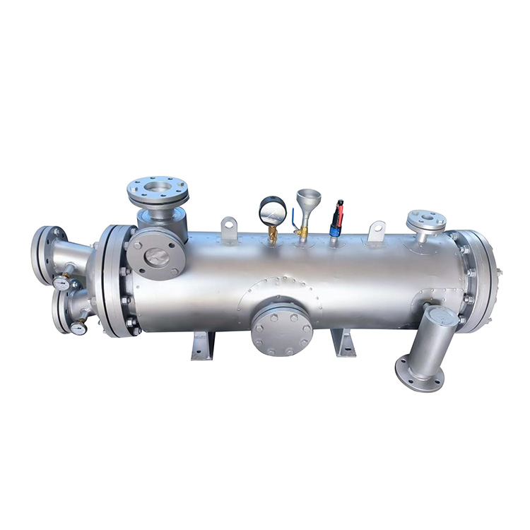 船用冷凝器是一种卧式壳管换热器,它能够将压缩机排出的高压、高温气体制冷剂冷却凝结成等压液体。